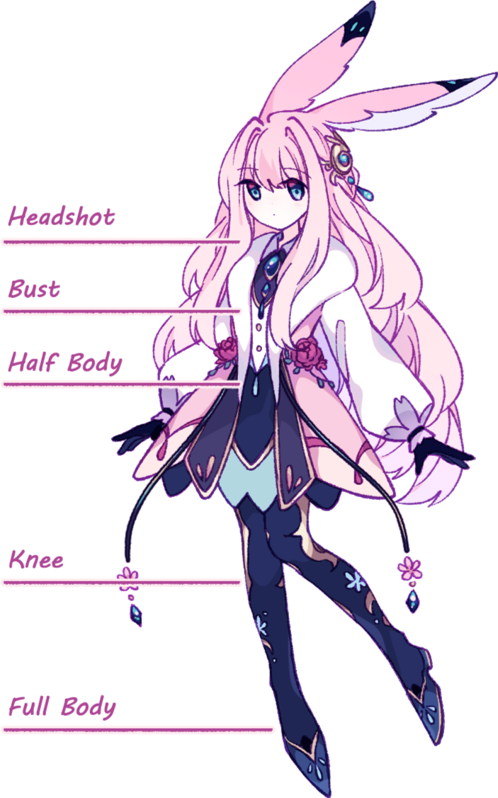เพื่อกำหนดเรทราคาที่ถูกต้องและไม่ให้เกิดปัญหาขึ้นในภายหลังรบกวนแจ้งกับผู้วาดทุกครั้งหากเป็นตัวละคร Youtuber/ Vtuber เนื่องจากผู้วาดไม่ได้ติดตาม